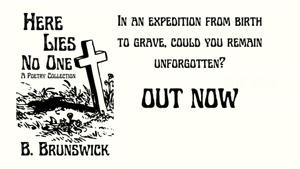Release day announcement for my new poetry collection Here Lies No One. The official release day is July 31st 2023! YAY!!